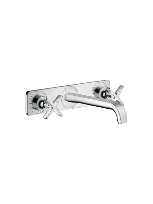 Axor Citterio E 3-hole basin mixer for concealed installation wall-mounted with spout 220 mm and plate