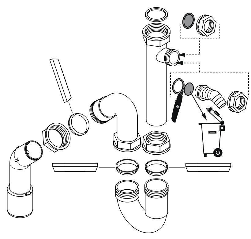 Consists of: waste and overflow set, screen basket, trap