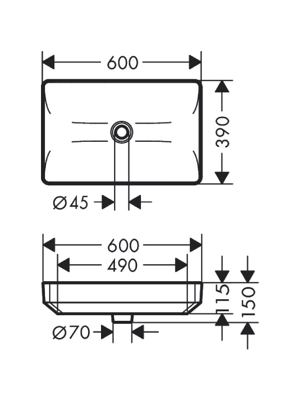 hansgrohe MellowTide Q – Wash bowl 600/390 without tap hole