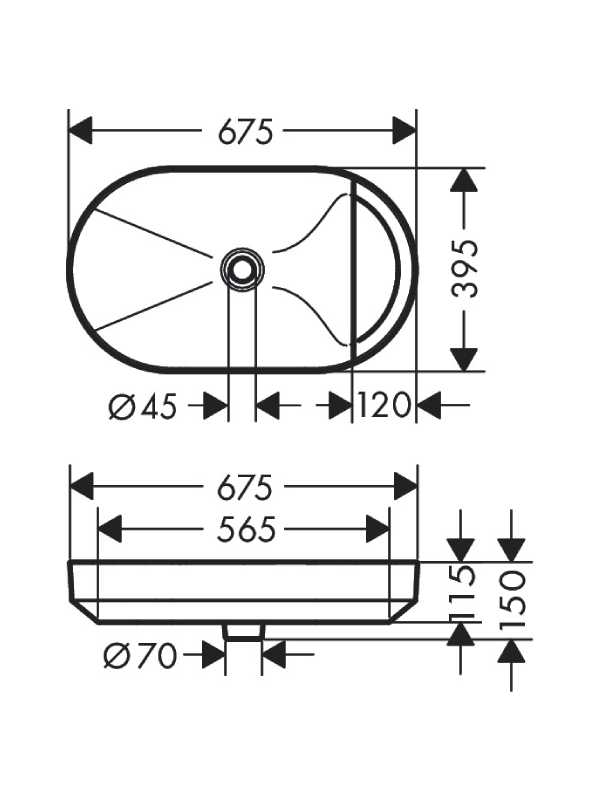 hansgrohe MellowTide U – Wash bowl 675/395 without tap hole with shelf