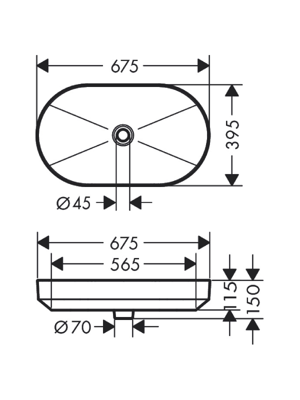 hansgrohe MellowTide U – Wash bowl 675/395 without tap hole
