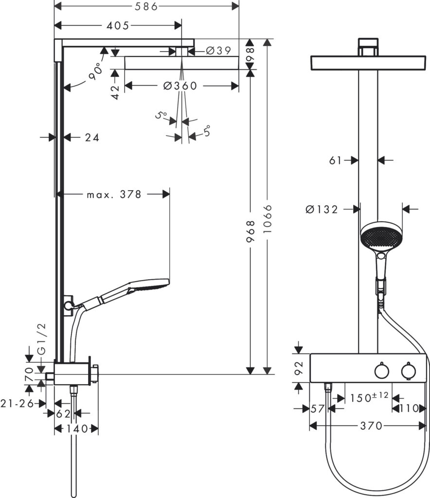 Consists of: overhead shower, hand shower, shower thermostat, shower hose, slider, shower bar