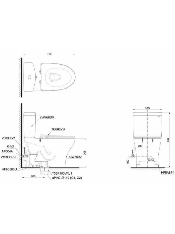 TOTO – Close-Coupled Toilet, Soft-closing Seat & Cover TC600VS