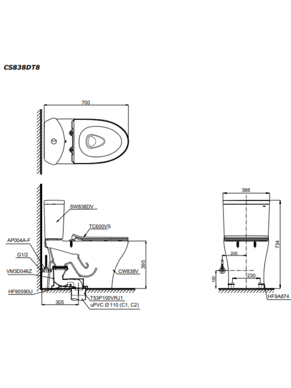 - Size:700D x 388W x 734H mm